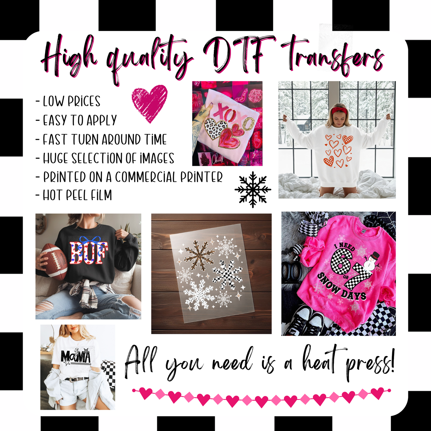 Prints can be purchased as individual transfers or as a gang sheet. Use your own custom design files or use any of my designs.