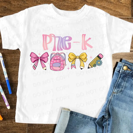 Bows, Bags, Pencils Pre-K, Kindergarten, 1st, 2nd, 3rd, 4th Grade Back to School DTF Transfer