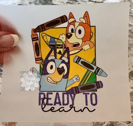 Ready to Learn Blue Dog and Bingo Crayons DTF Transfer