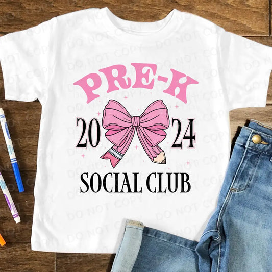 Social Club Pink Bow Pre-K, Kindergarten, 1st, 2nd, 3rd, 4th Grade Back to School DTF Transfer