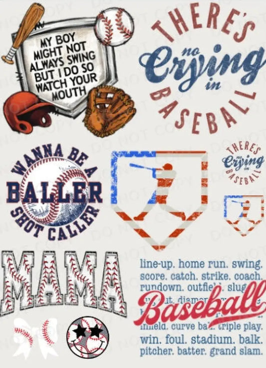 Pre-Made Baseball DTF Gang Sheet 22x36 with with 5 adult, 1 youth, 4 pocket size designs