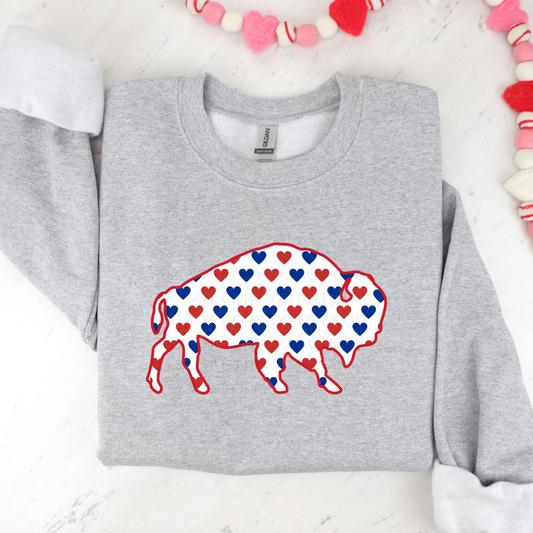 Buffalo Red and Blue Hearts Row Valentine DTF Transfer