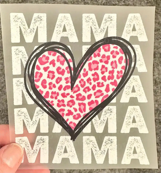 Mama Heart Pink Cheetah DTF Transfer