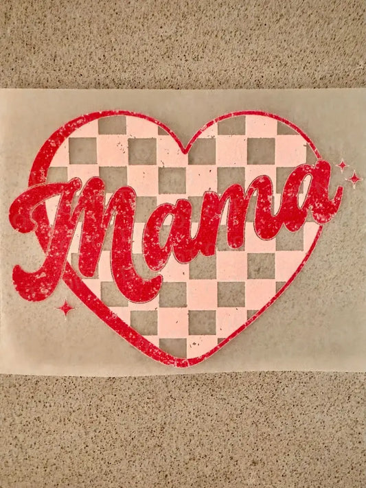Mama Pink Retro Checked Heart Valentine's Day DTF Transfer