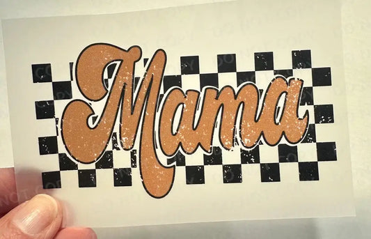 Mama Retro Checked Black and Brown Rust Gold DTF Transfer