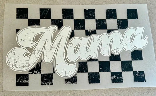 Mama Retro Checked Black and Pink Distressed DTF Transfer