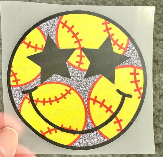 Softball Happy Face Smile Glitter Stars DTF Transfers