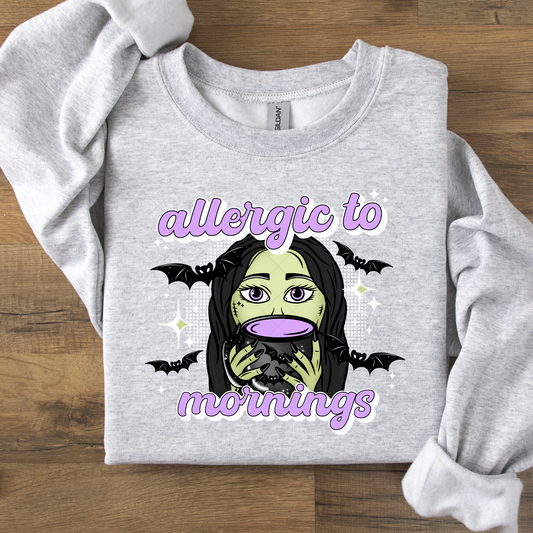 Allergic to Mornings Black or White Spooky DTF Transfer