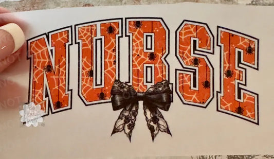 Nurse Halloween Orange Letters Black Bow DTF Transfer