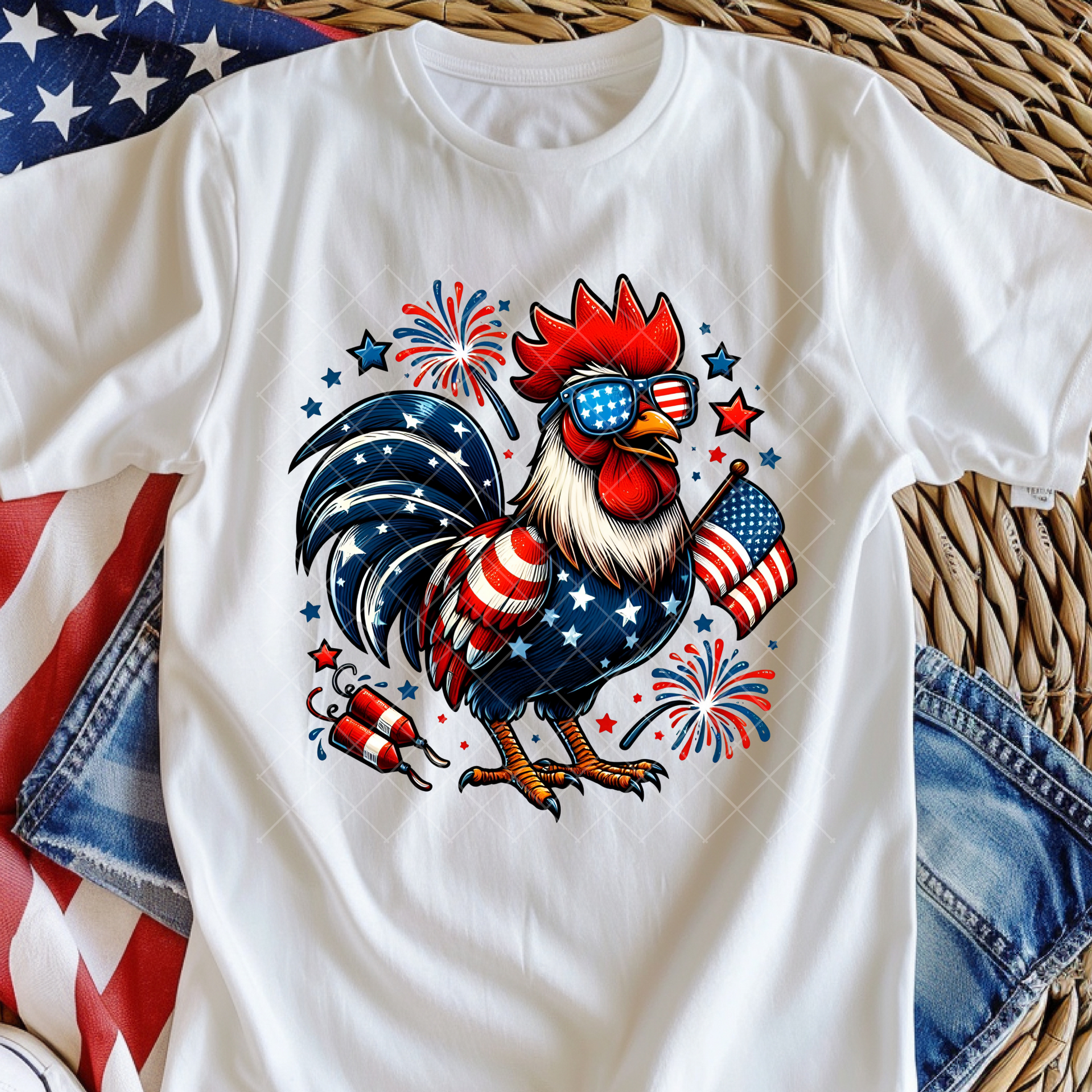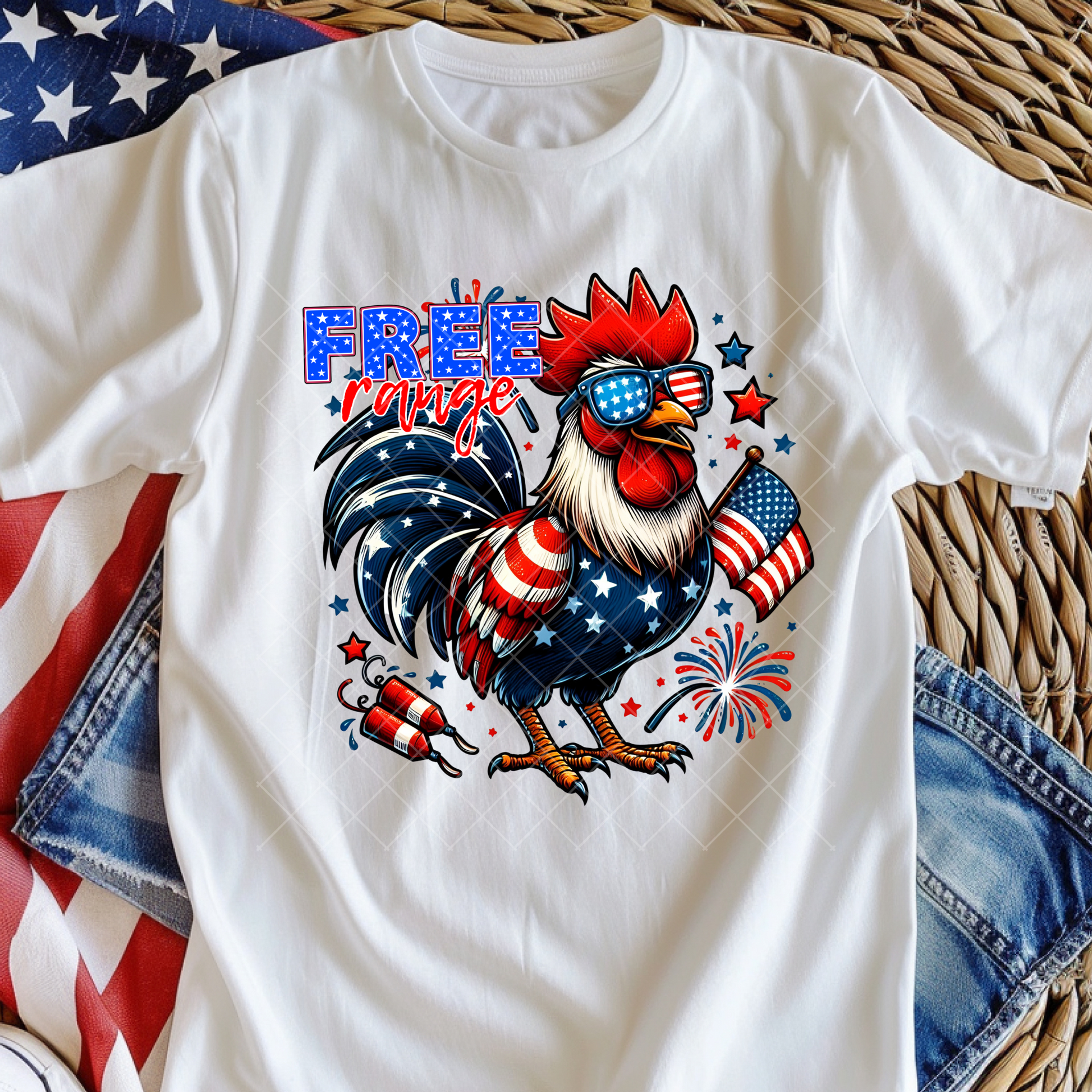 Patriotic Rooster Free Range DTF Transfer