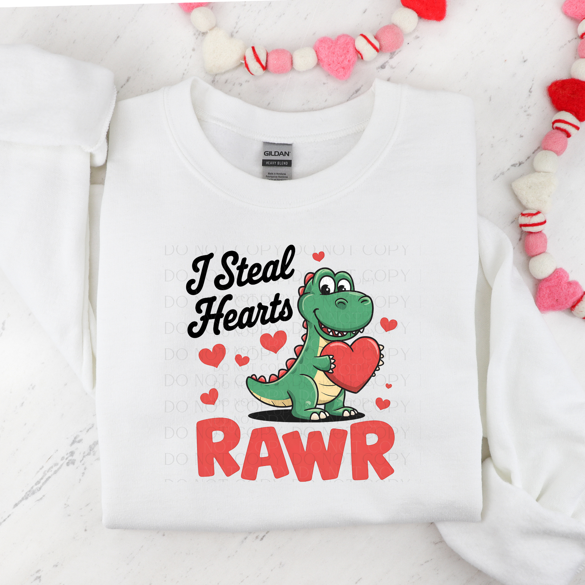 I Steal Hearts Dinosaur Kids Valentine DTF Transfer