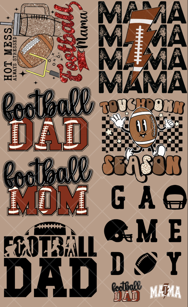 Pre-Made Football DTF Gang Sheet 22x36 with 7 Adult Size and 2 Pocket Designs