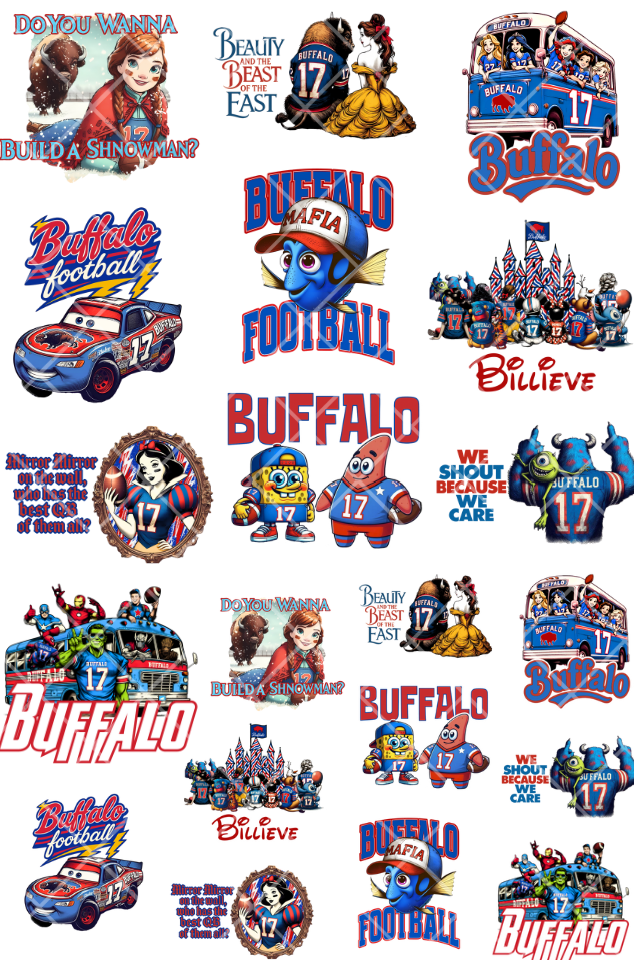 Pre-Made Kids Buffalo DTF Gang Sheet 22x36 with 10 youth and 10 infant sizes designs