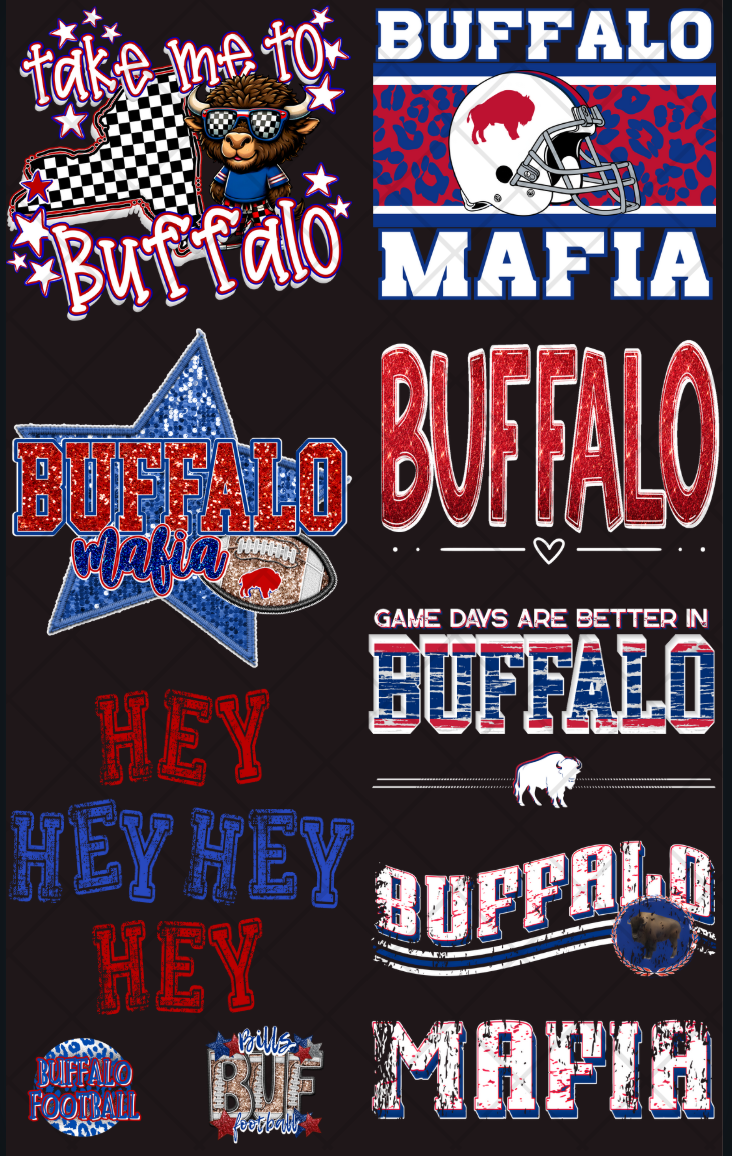 Pre-Made Buffalo Mafia DTF Gang Sheet 22x36 with 8 adult and 2 pocket sizes designs