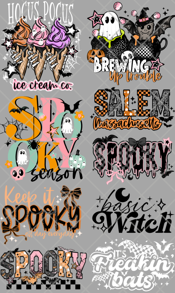 Pre-Made Halloween DTF Gang Sheet 22x36 with 9 adult size images