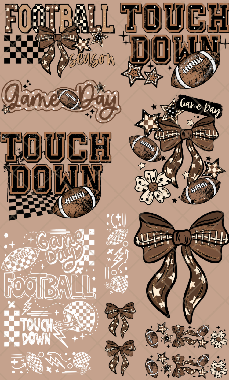 Pre-Made Football DTF Gang Sheet 22x36 with 7 Adult, 2 Pocket and 4 Sleeves Size Designs