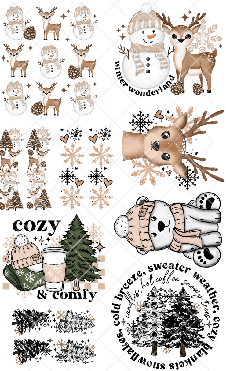 Pre-Made Winter DTF Gang Sheet, 6 Adult and 3 sets of sleeve designs 22x36