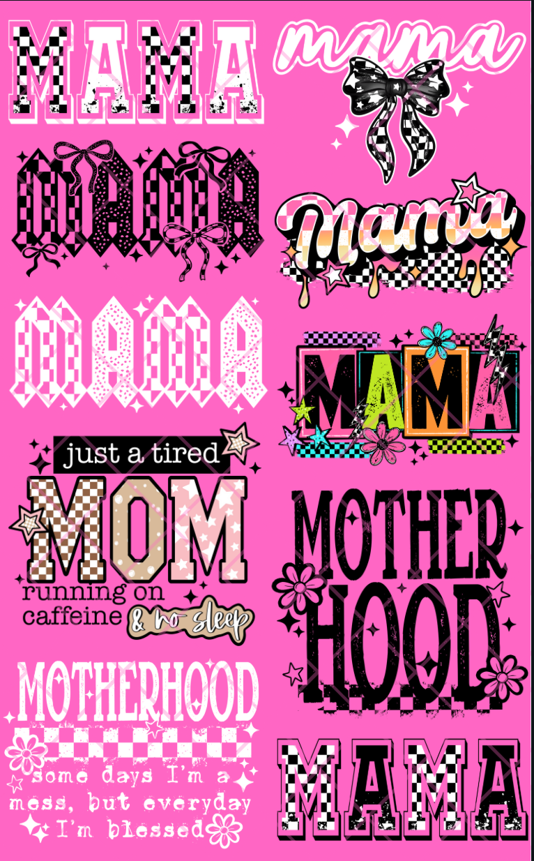 Pre-Made Mama DTF Gang Sheet 22x36 with 10 Adult Size Designs