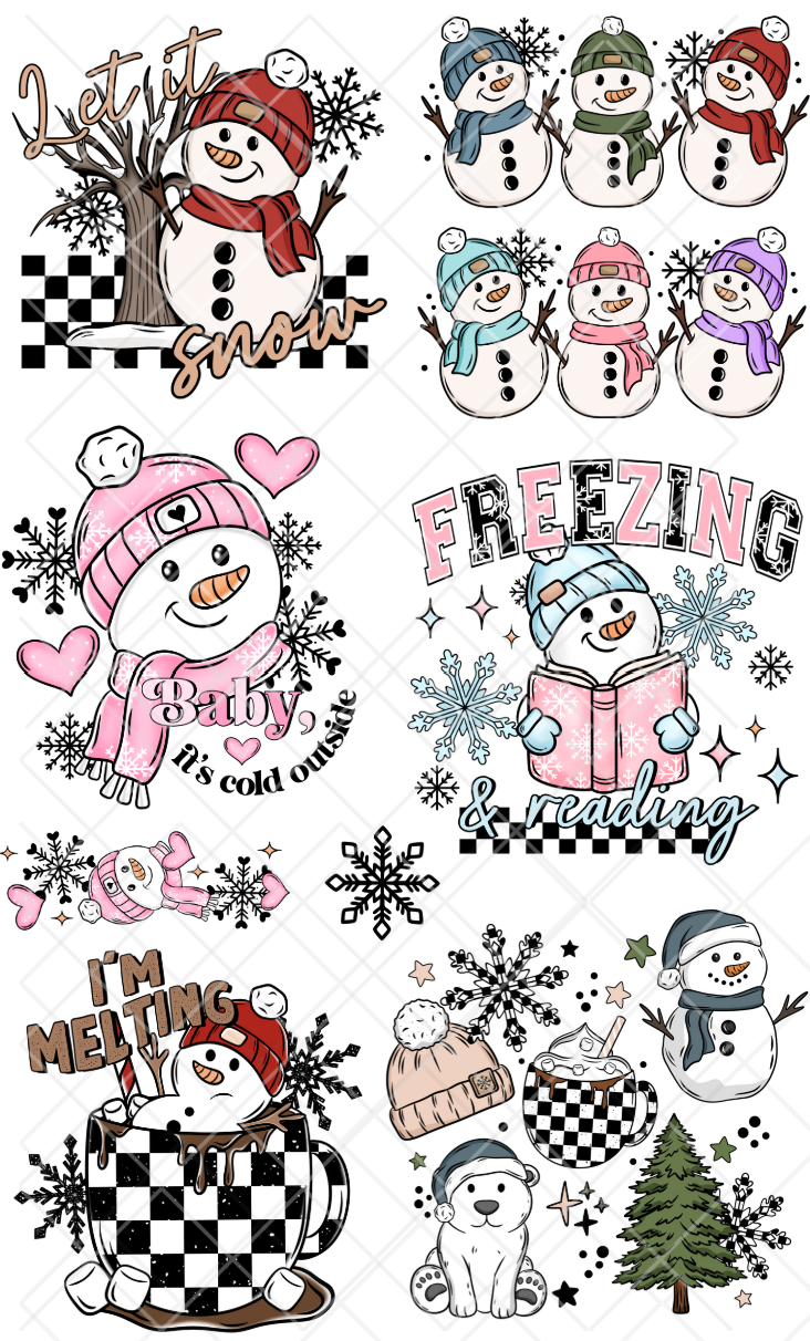 Pre-Made Winter DTF Gang Sheet, 7 Adult and 1 sleeve design 22x36