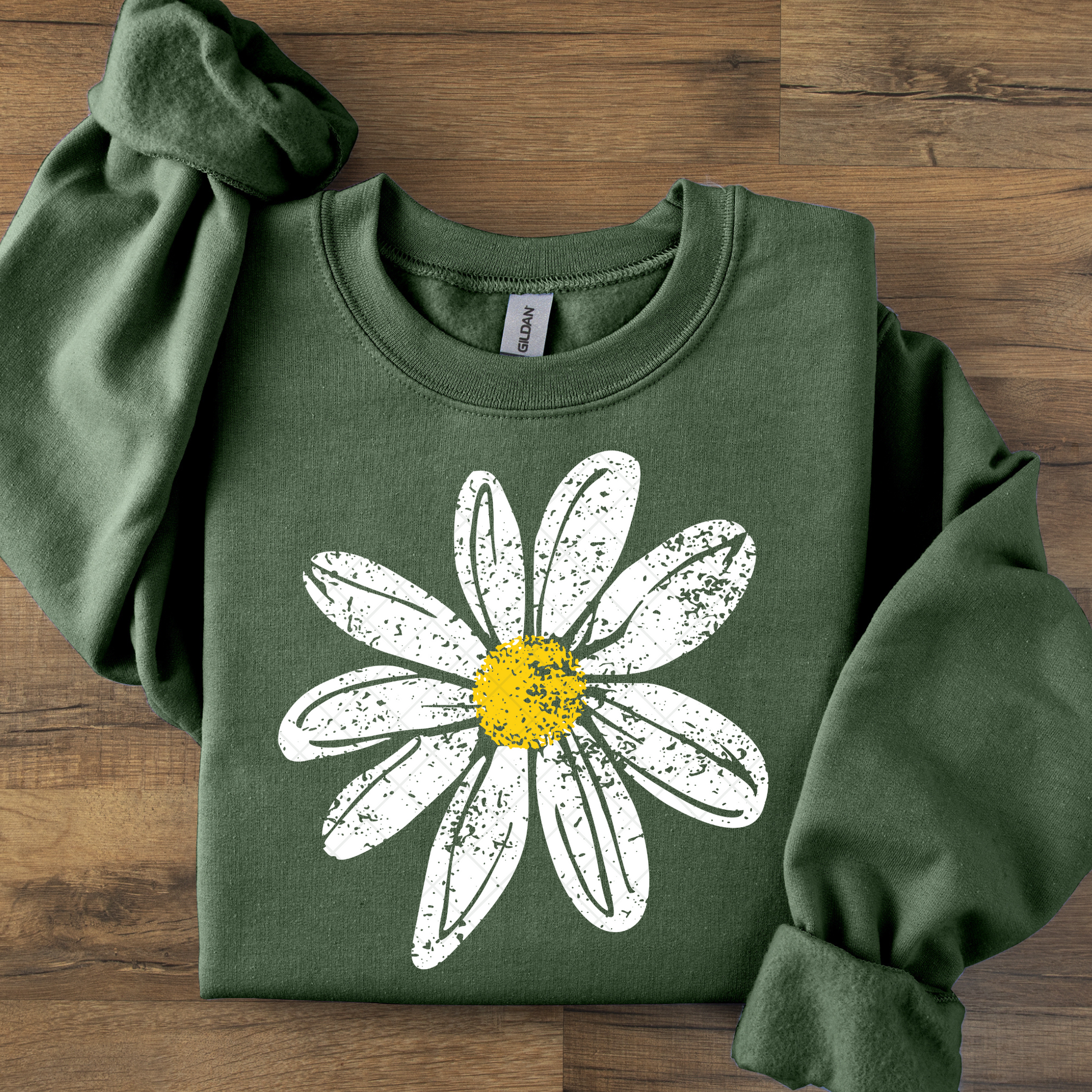 Pretty White and Yellow Distressed Daisy DTF Transfer
