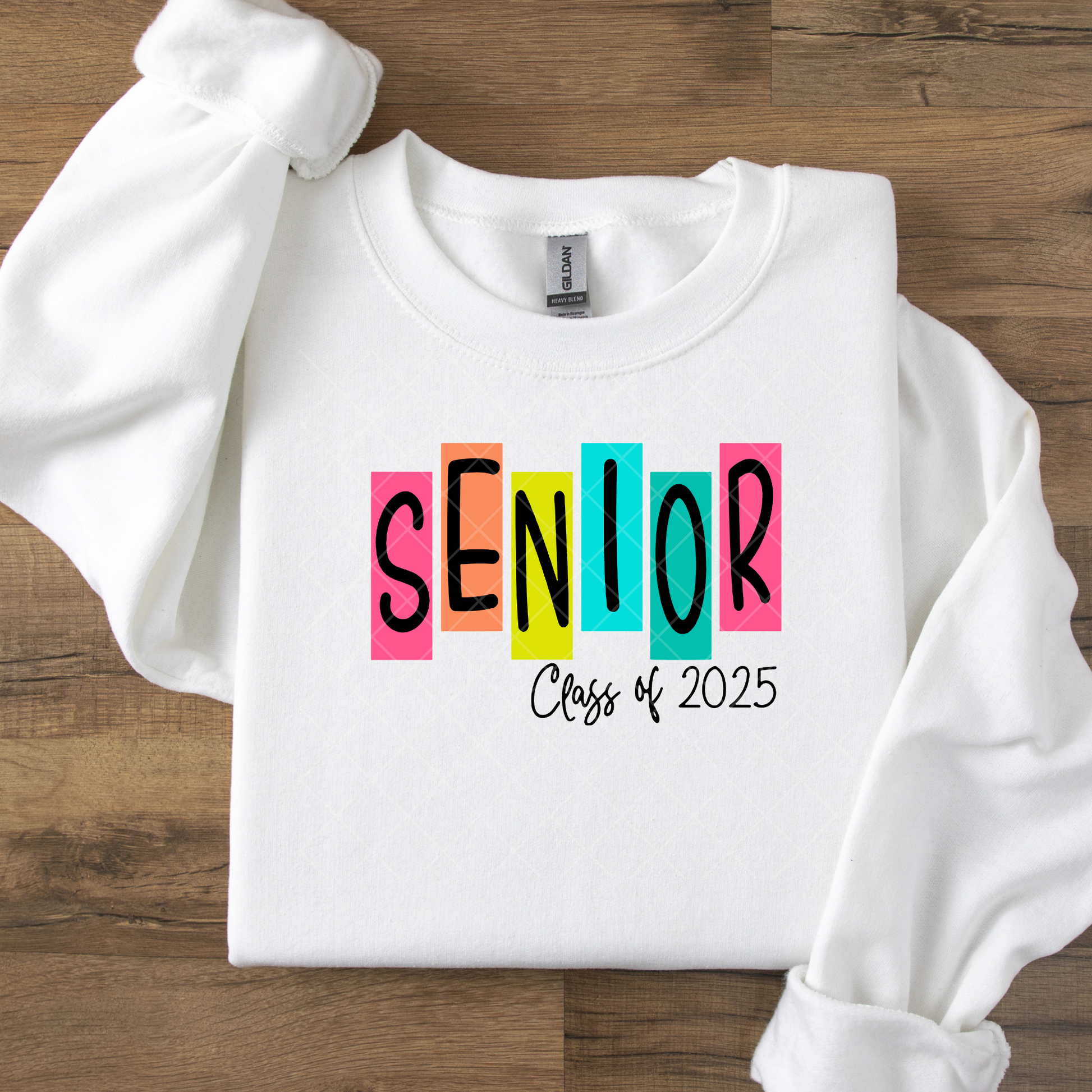 Senior Class of 2025 Colorful Block Letters DTF Transfer